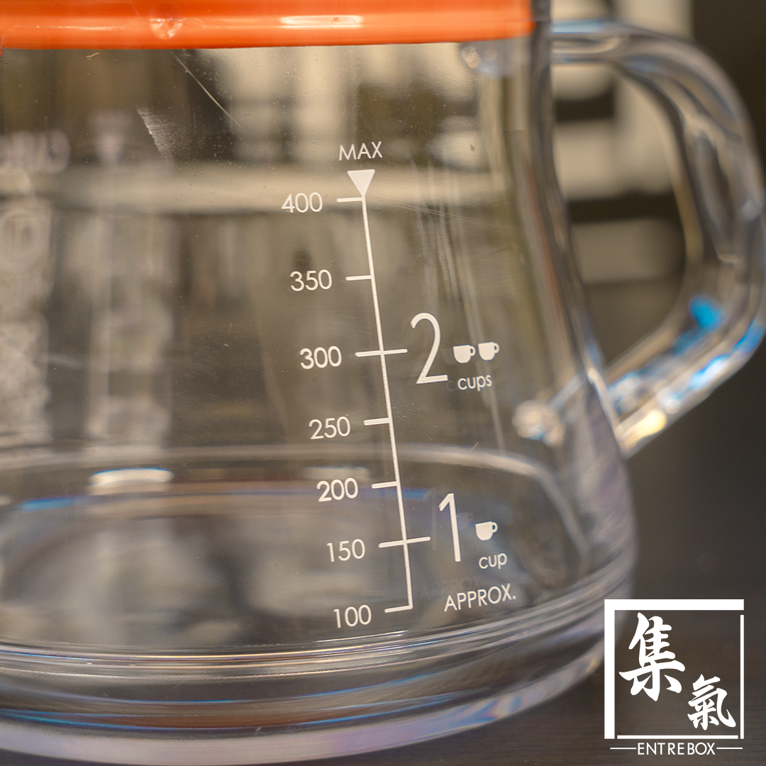 Thanks to the clear numeric indication, we can easily brew even without a scale. Unlike the usual glass servers, it is made of Tritan, which is light, strong and durable.