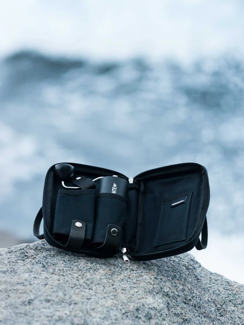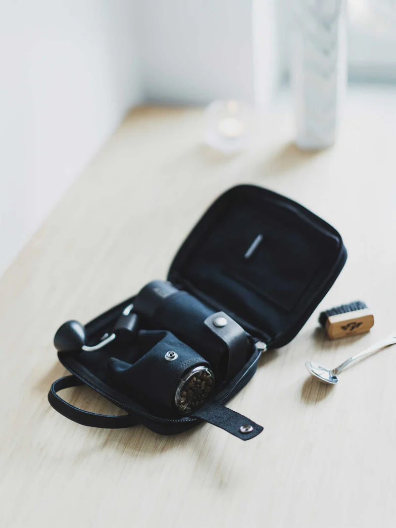 We have made couple of small refinements to the internals, where you’ll find pockets for your Comandante® grinder, Bean Jars, and other accessories like your cupping spoon and cleaning brushes. The design is compact but deceptively flexible and spacious, meaning keen packers will find space for much more, too!