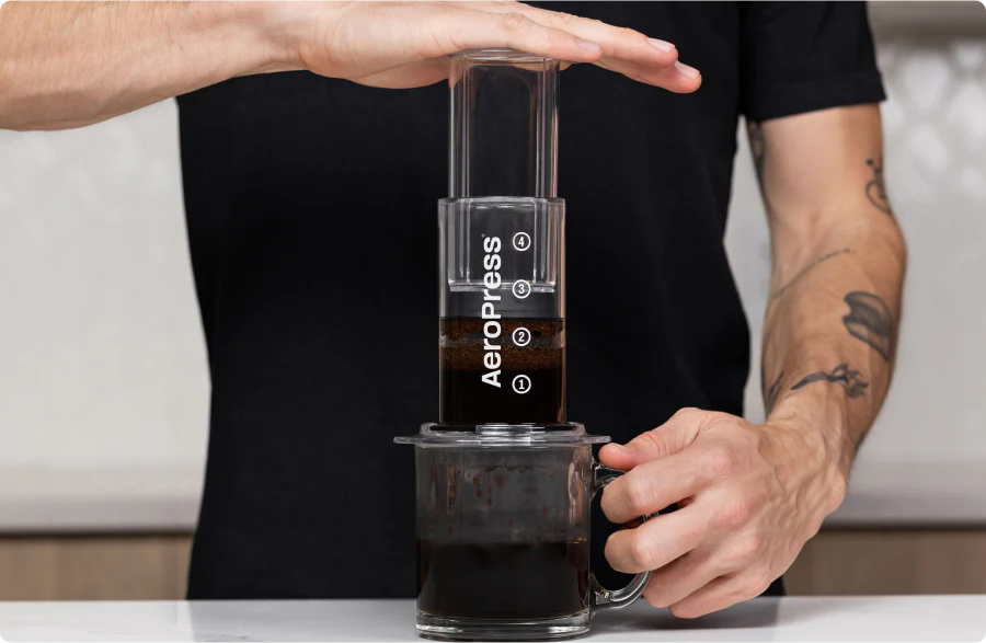 Prvo, voda se prelije preko kafe, vlaže i prozračuje mljevenje, stvarajući prepoznatljivu AeroPress glatkoću. Zatim, tokom procesa potapanja, voda prodire u mlevenu kafu za dublje note ukusa i punu završnicu koja se često nalazi u French press-u. Konačno, magija se dešava – vazdušni pritisak brzo gura napitak kroz ležište za kafu i filter, uklanjajući talog i ulja gorkog ukusa za bogatstvo nalik espresu