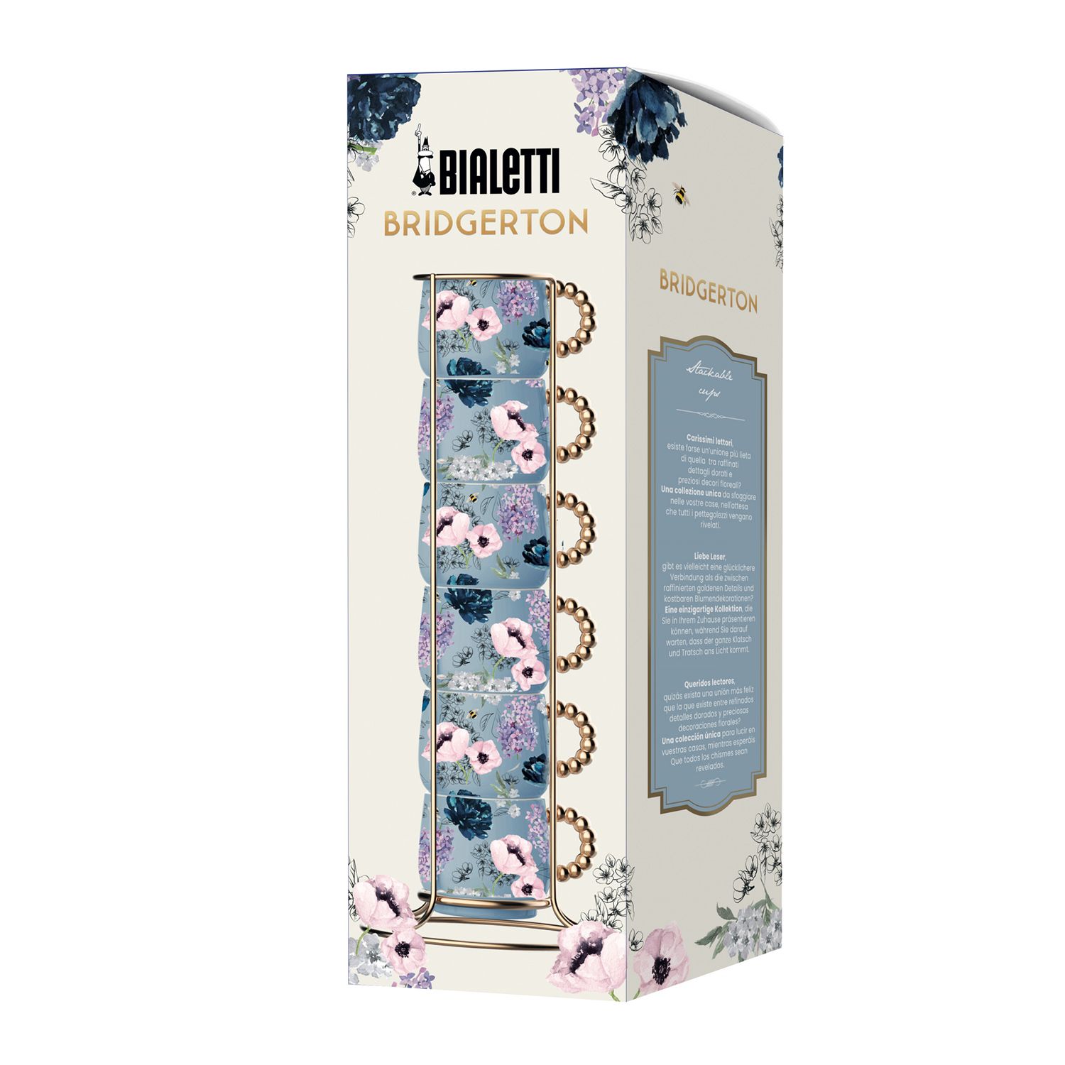 Male šolje inspirisane romantičnom i svežom atmosferom Netflix-ove serije – upotpunjuju kolekciju svojom elegancijom i prefinjenošću. Sa zlatnim umetcima i ručkama, ovaj porcelan bi sigurno krasio sopstveni sto kraljice Šarlote.