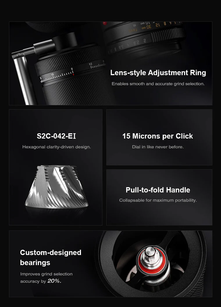 Dodatna nadogradnja uključuje ugradnju „Red Ring“ ležajeva sa strožom tolerancijom od 5 mikrona, za razliku od prethodnih 7 mikrona. Ova poboljšana preciznost povećava centričnost, doprinoseći oštrijoj distribuciji mljevenja za svetliju ukupnu čašu.